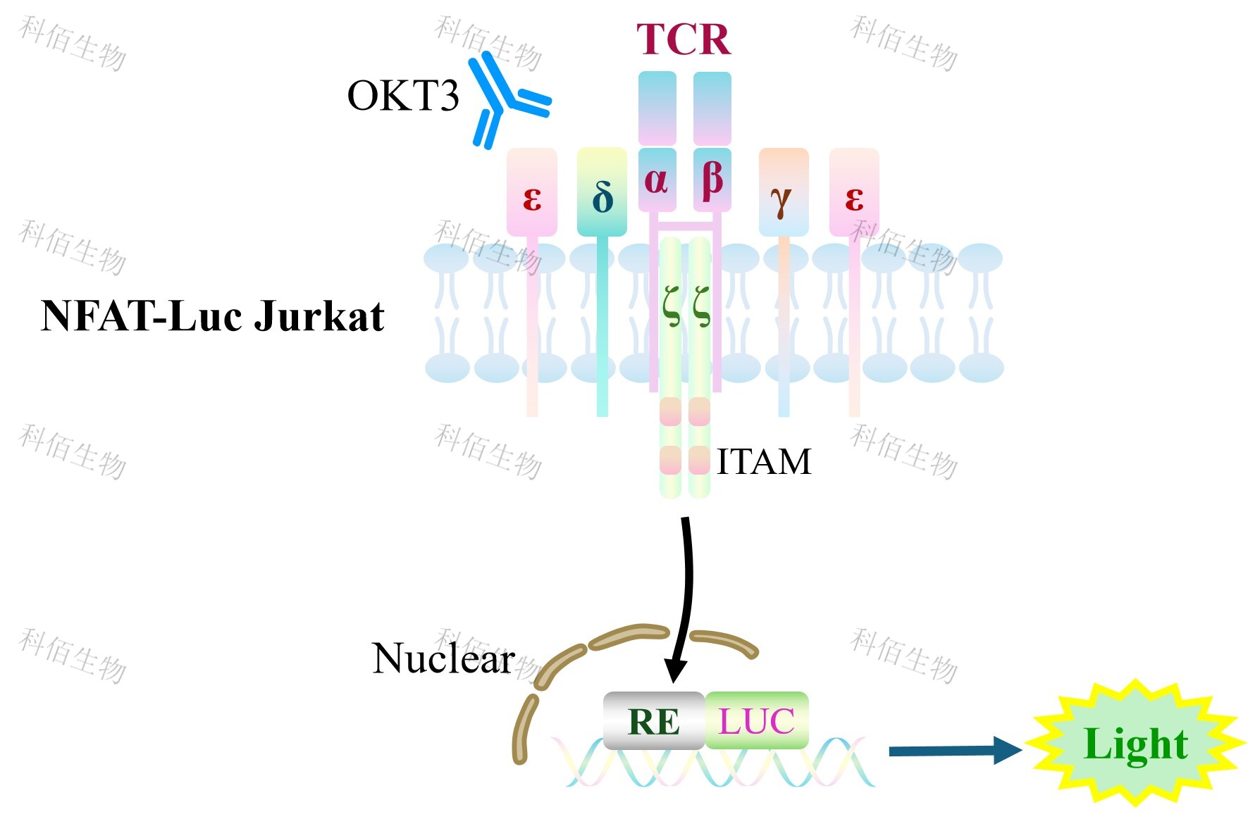 Figure 1. NFAT-Luc Jurkat 細胞模型原理圖 |