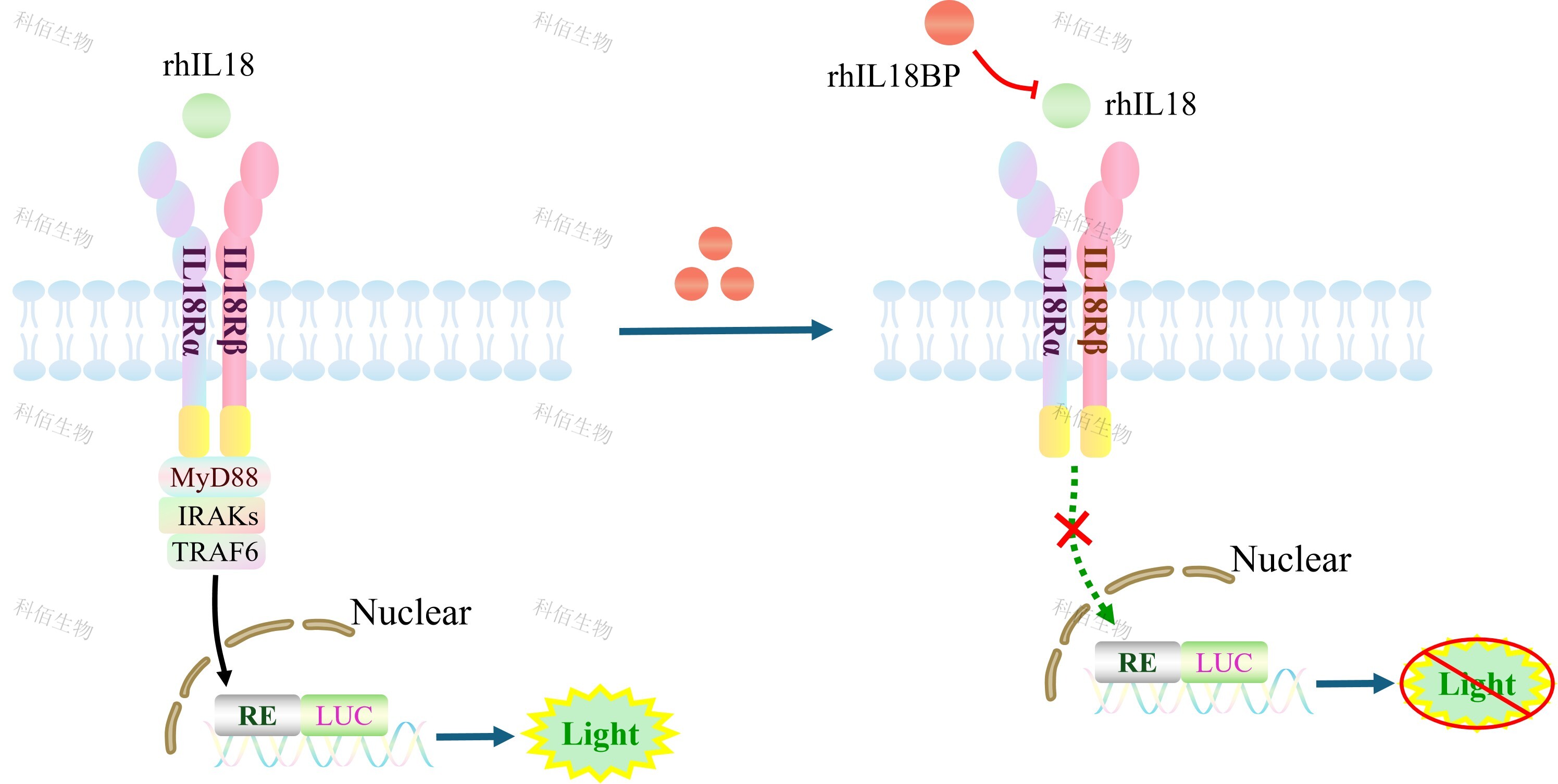 | IL18 Effector Reporter Cell(Suspension),在由調(diào)控因子調(diào)控并表達(dá)報(bào)告基因的重組細(xì)胞上,穩(wěn)定表達(dá)人 IL18Rα和人 IL18Rβ。 報(bào)告基因細(xì)胞模型可以很好的反映分子作用機(jī)制,同時(shí)具備更小的變異性和更好的可 操作性,已被中檢院及藥企廣泛應(yīng)用于抗體藥物生物活性的檢定,對(duì)于藥物研發(fā)、質(zhì)量控 制、批次放行都有重要意義。 IL18 Effector Reporter Cell(Suspension)報(bào)告基因藥靶模型很好的模擬了體內(nèi) IL18 的信號(hào)轉(zhuǎn)導(dǎo)過程,原理見下圖所示。 ![]() Figure 1. IL18 Effector Reporter Cell(Suspension)細(xì)胞模型原理圖 |