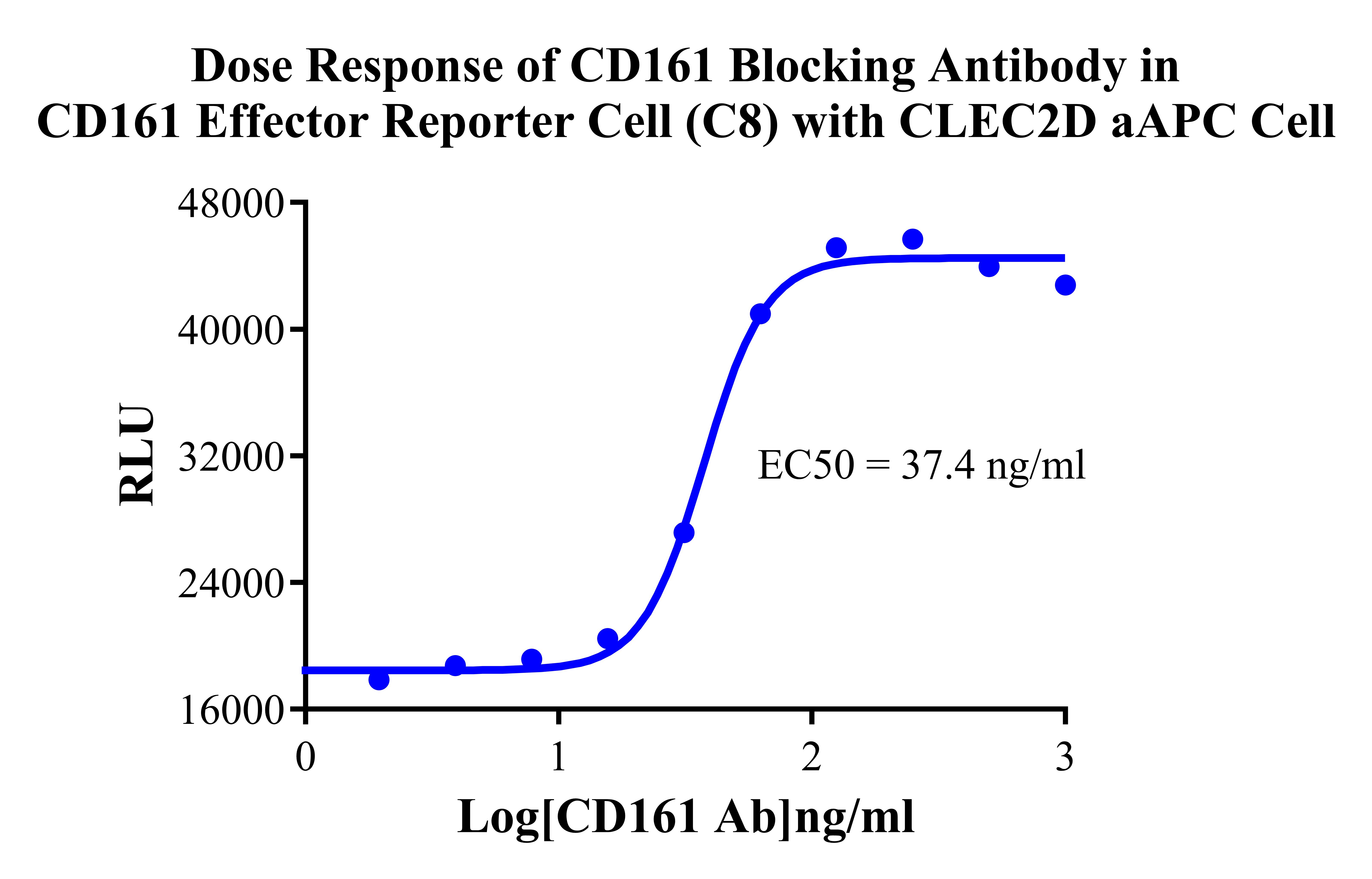 Figure 1. Dose Response of CD161 Blocking Antibody in CD161 Effector Reporter Cell (C8) With CLEC2D aAPC Cell. |