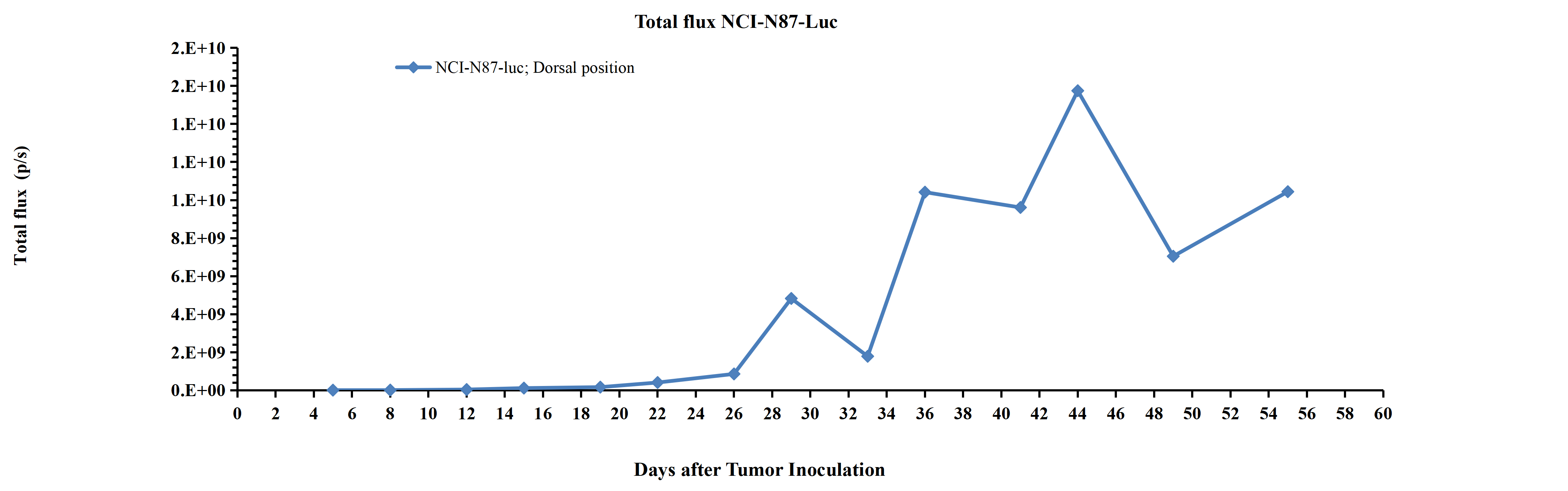 Figure 2. Stablity test results. NCI-N87-Luc cells showed at least 32 passage stability with similar luminescence unit. |