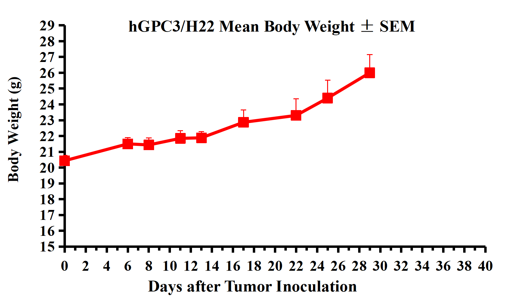 Figure 2. hGPC3/H22 Mean Body Weight ± SEM.
