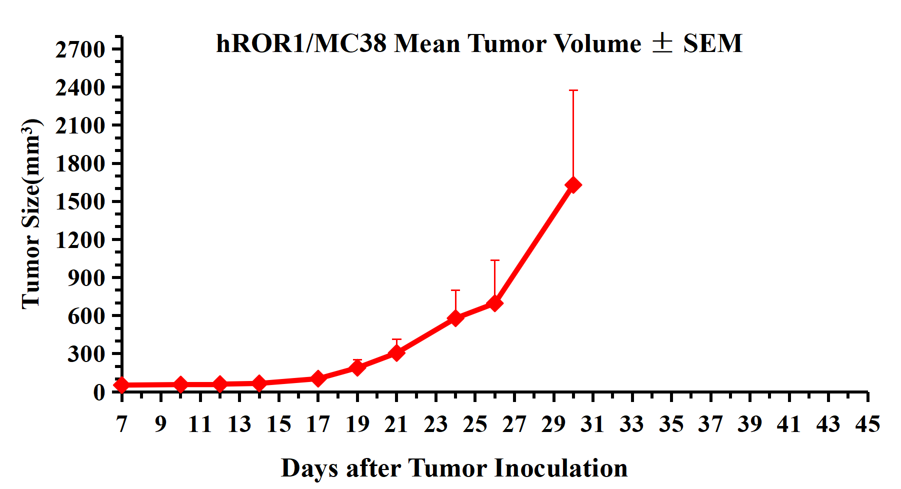Figure 3.hROR1/MC38 Mean Tumor Volume ± SEM .