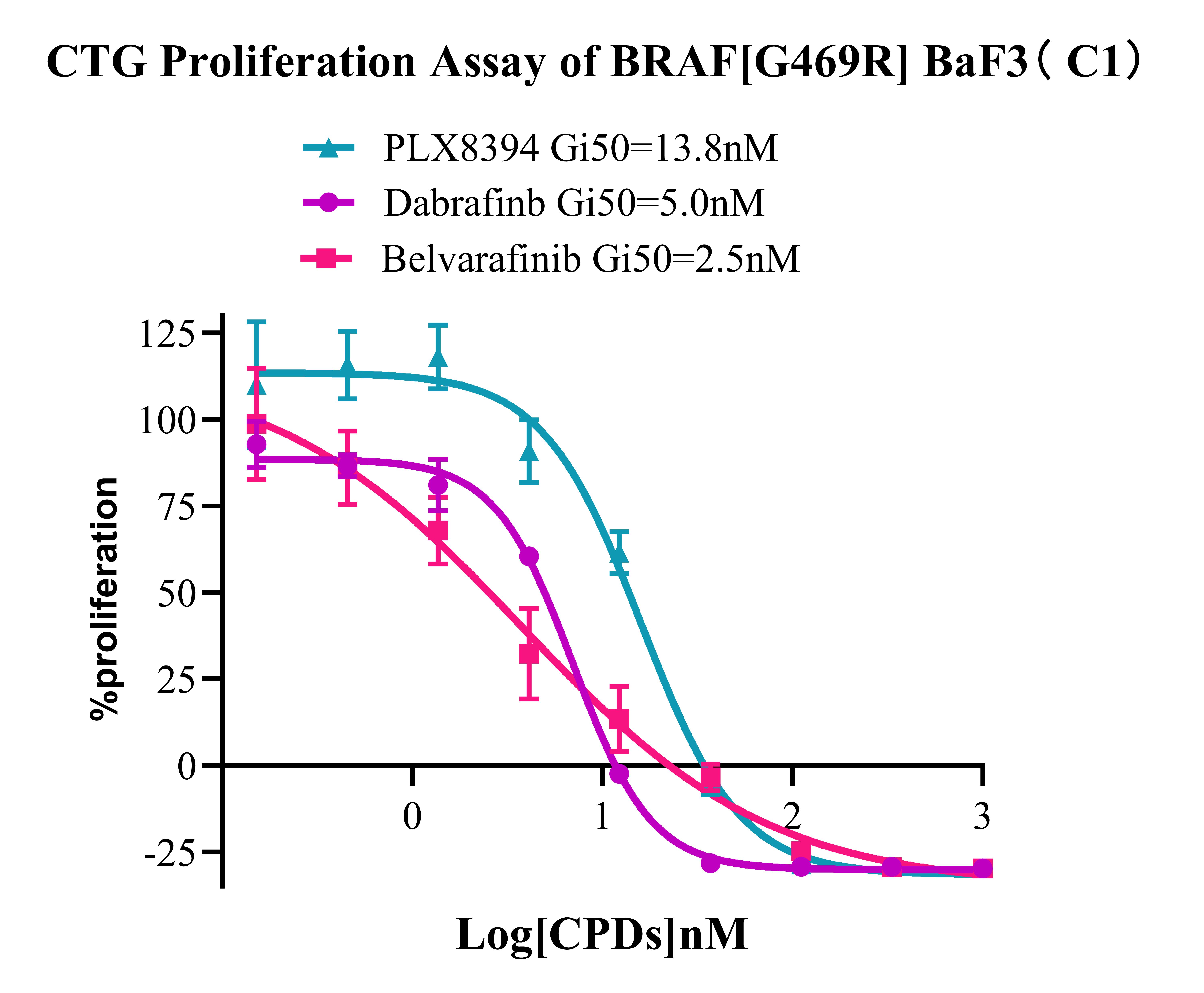 Figure 4. CTG proliferation Assay of BRAF [G469R] BaF3 (C1). |