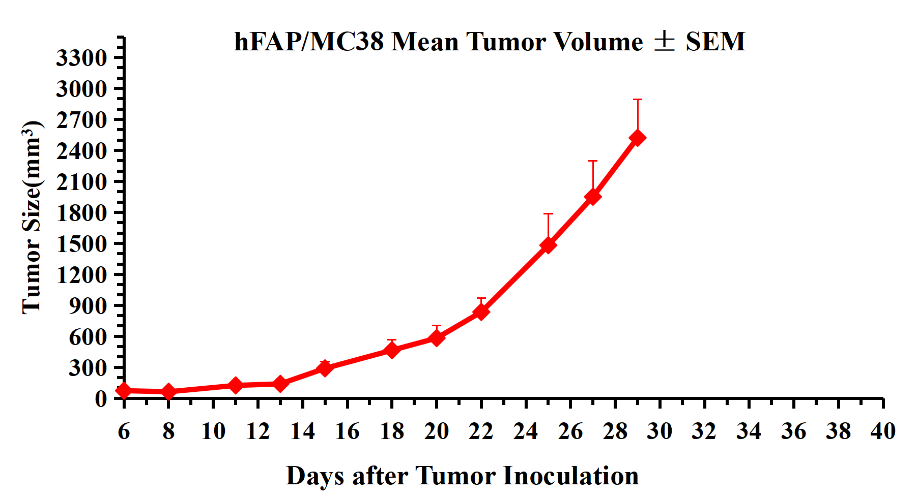 Figure 3. hFAP/MC38 Mean Tumor Volume ± SEM .
