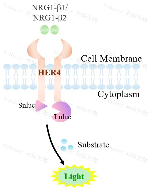 ERBB4(HER4) Dimerization CHO 報(bào)告基因藥靶模型很好的模擬了體內(nèi) ERBB4 的信號(hào)轉(zhuǎn)導(dǎo)過(guò)程,原理見(jiàn)下圖所示。![]() Figure 1. ERBB4(HER4) Dimerization CHO 細(xì)胞模型原理圖 |