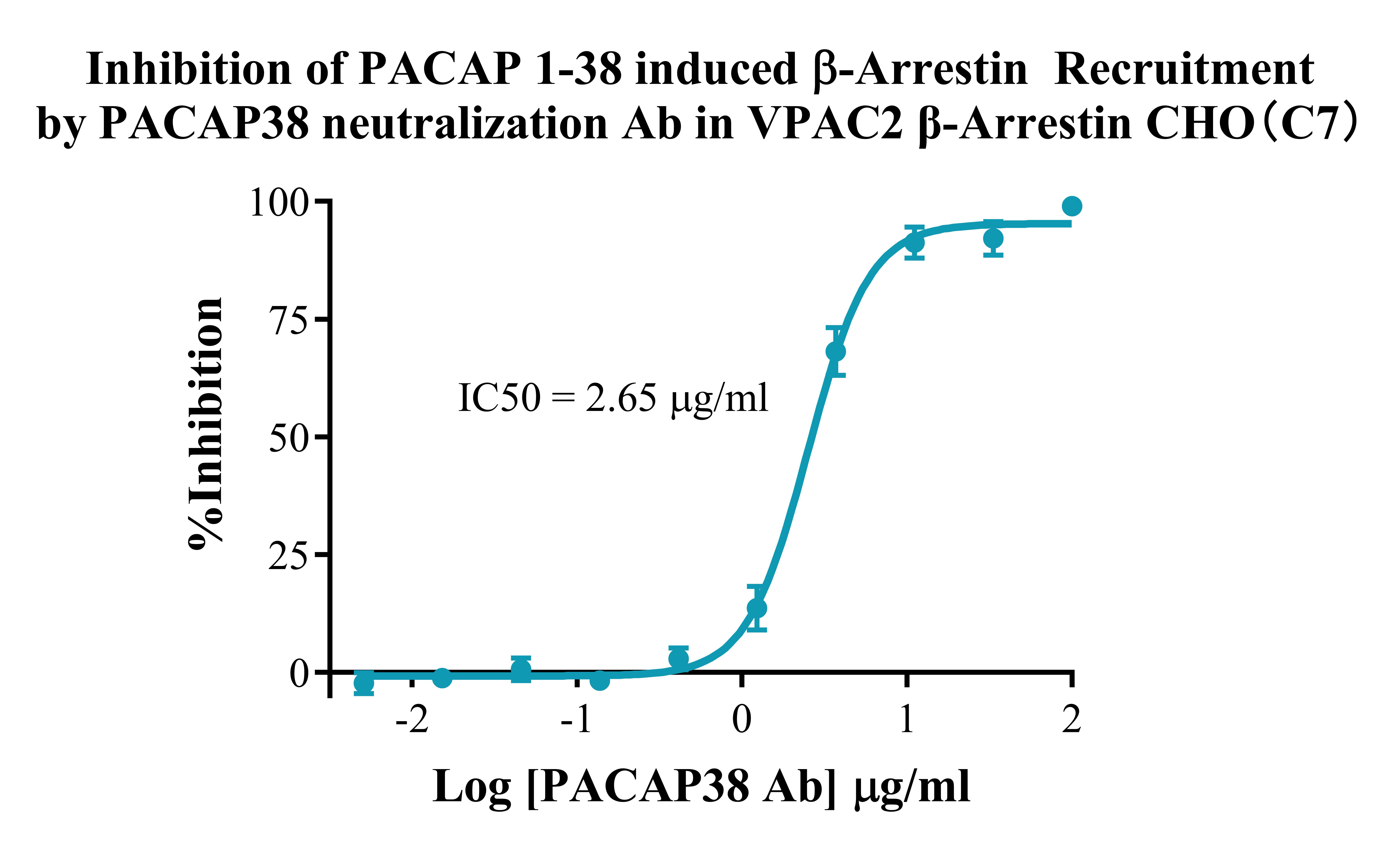 V. Representative Data![]() Figure 1. Dose Response of Agonists in VPAC2 β-Arrestin CHO( C7). ![]() Figure 2. Inhibition of PACAP 1-38 induced β-Arrestin Recruitment by PACAP38 neutralization Ab in VPAC2 β-Arrestin CHO(C7). |