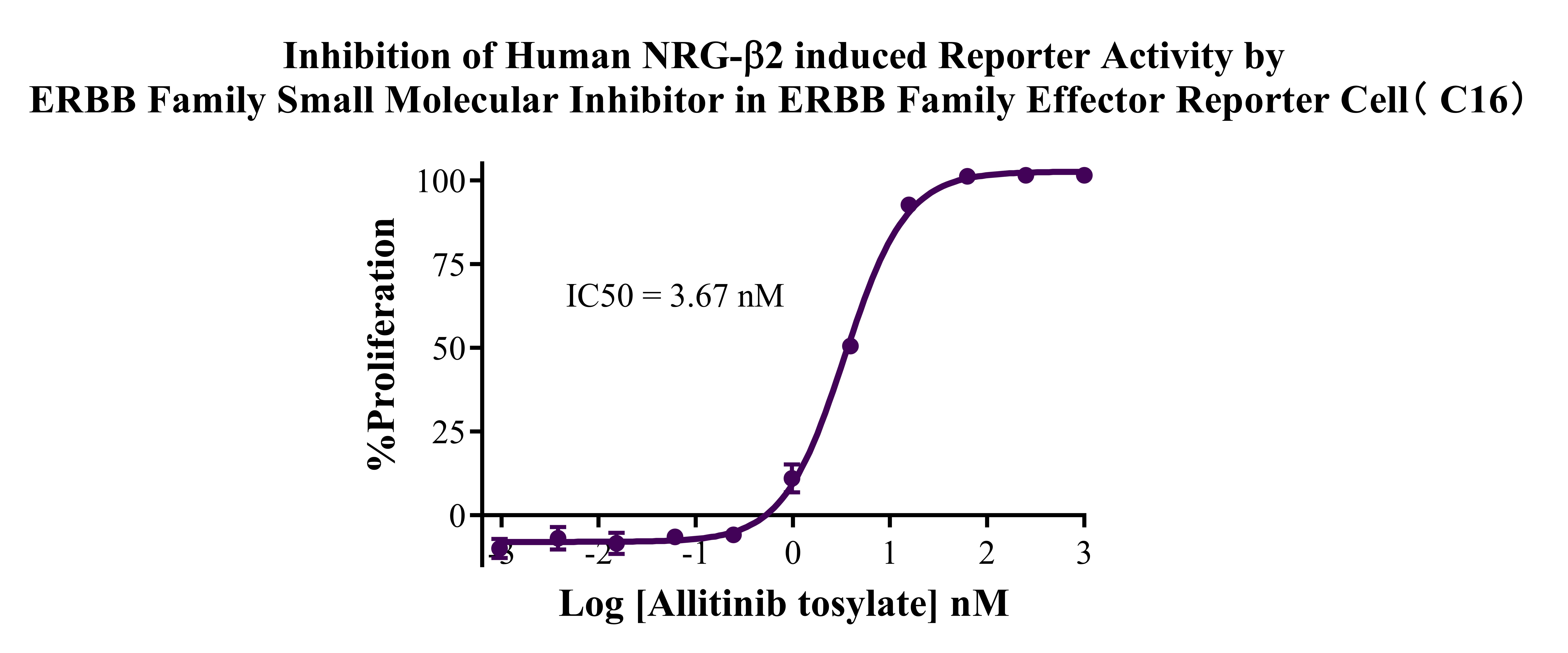 Figure 7. Inhibition of Human NRG-β1 induced Reporter Activity by ERBB Family Small Molecular Inhibitor in ERBB Family Effector Reporter Cell (C16).