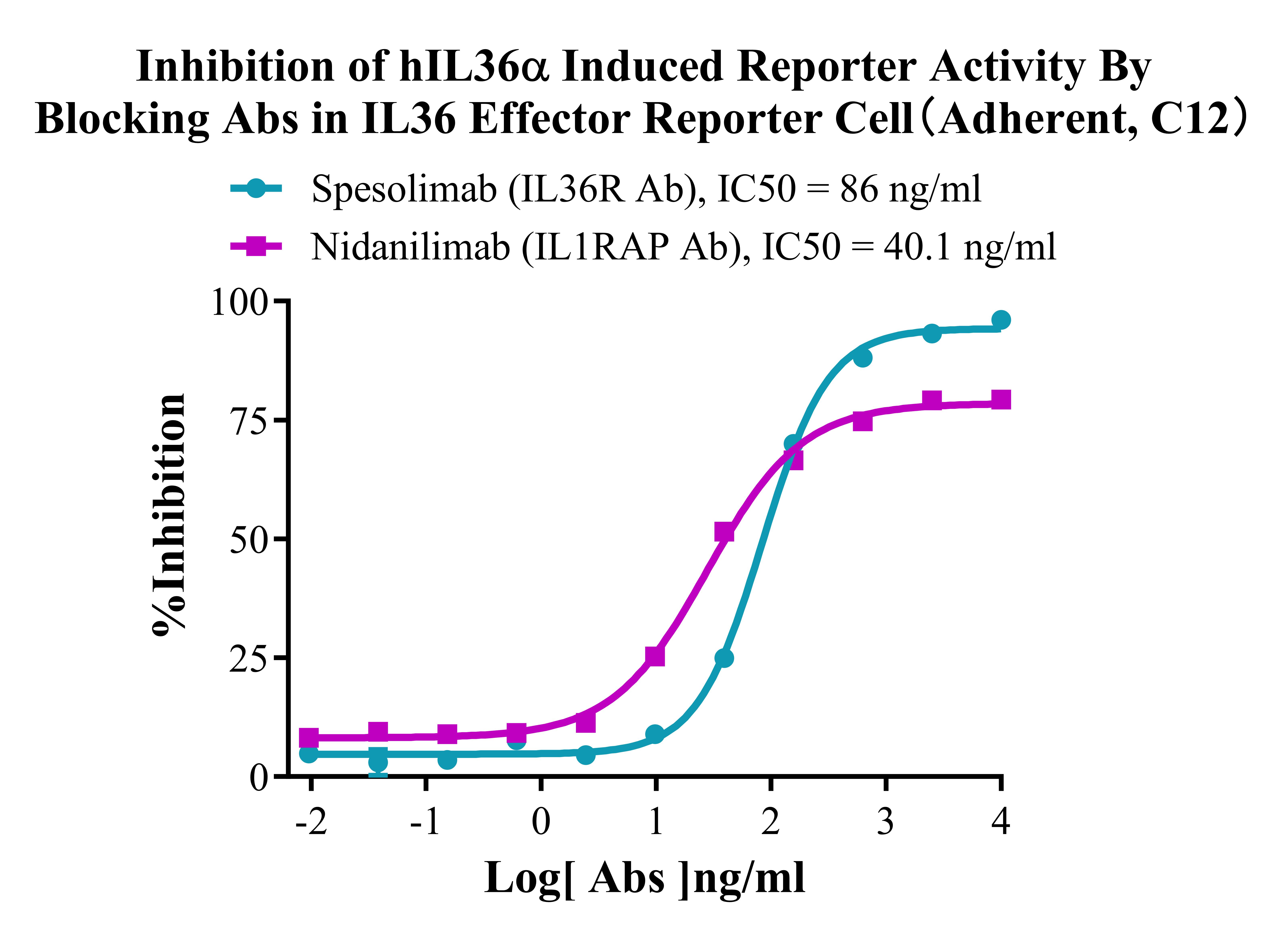 ![]() Figure 2. Recombinant IL36 Effector Reporter Cell(Adherent) stably expressing IL36R. ![]() Figure 3. Dose Response of Recombinant Human IL36 alpha Protein in IL36 Effector Reporter Cell(Adherent, C12). ![]() Figure 4. Inhibition of hIL36α Induced Reporter Activity By Blocking Abs in IL36 Effector Reporter Cell(Adherent, C12). |