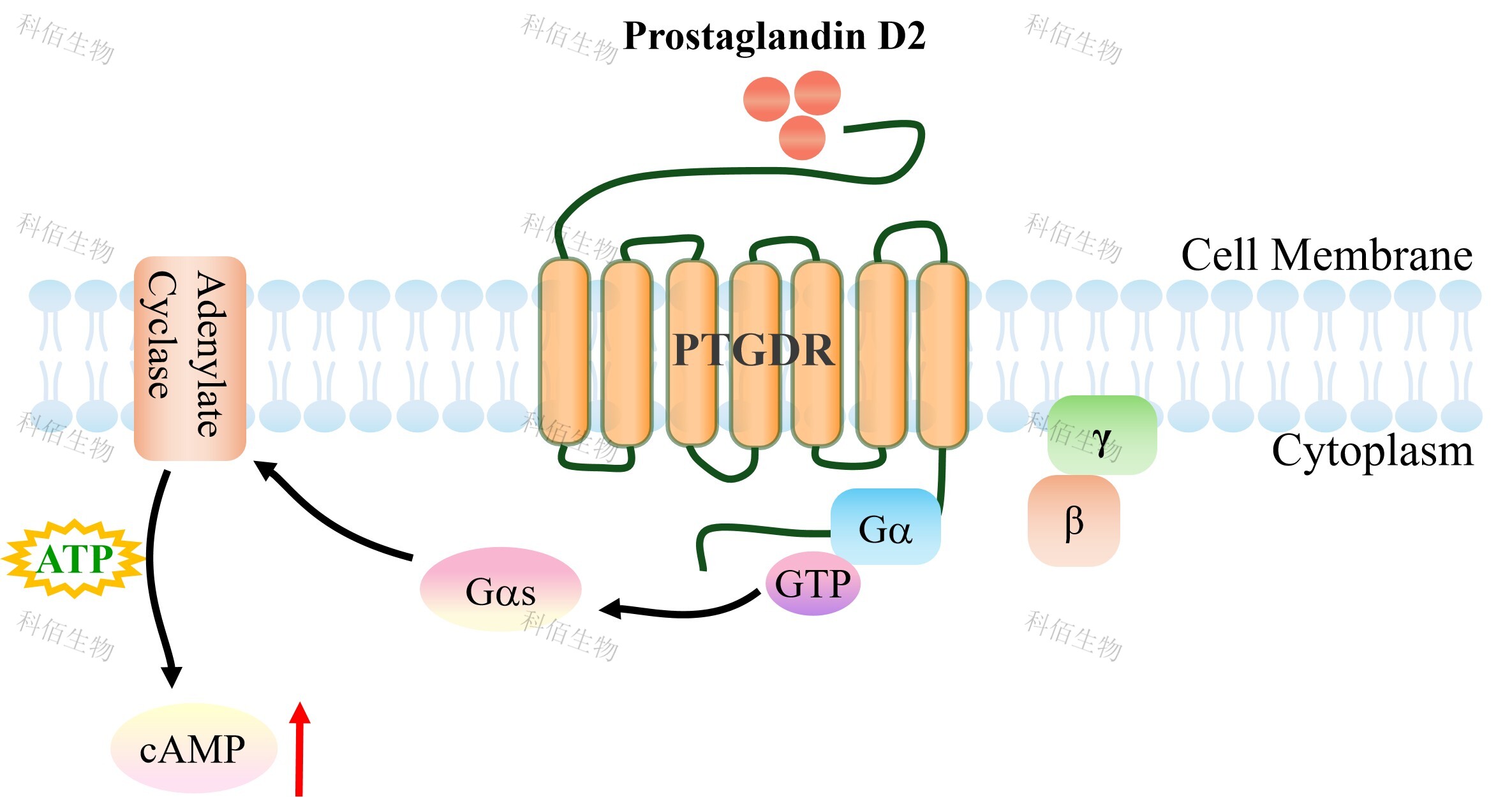 | PTGDR(Prostaglandin D2 Receptor,前列腺素 D2 受體)屬于前列腺素類受體家族, 也被稱為 DP1 受體,該蛋白屬于 GPCR 超家族,是具有七個跨膜結(jié)構(gòu)域的膜蛋白。 PTGDR 的天然配體是前列腺素 D2(PGD2),這是一種在過敏性炎癥中起關(guān)鍵介導(dǎo)作用的脂質(zhì)介質(zhì)。該受體在人體組織中廣泛表達,包括脾臟、結(jié)腸、小腸、視網(wǎng)膜以及血小板膜等。功能上,PTGDR 不僅參與過敏性哮喘的氣道炎癥反應(yīng),還涉及睡眠-覺醒周期的調(diào)節(jié)、 血管舒張以及神經(jīng)系統(tǒng)保護等多種生理過程。遺傳學(xué)研究顯示,PTGDR 基因啟動子區(qū)的多 態(tài)性會影響其轉(zhuǎn)錄效率,并與哮喘(ASRT1)的易感性顯著相關(guān)。 PTGDR 作為細胞表面受體,其信號傳導(dǎo)始于與配體 PGD2 的特異性結(jié)合。結(jié)合后,受體構(gòu)象發(fā)生改變,主要偶聯(lián)并激活刺激性 G 蛋白(Gαs) ?;罨?Gαs 亞基進而激活細胞膜上的效應(yīng)酶(腺苷酸環(huán)化酶),催化三磷酸腺苷(ATP)轉(zhuǎn)化為環(huán)磷酸腺苷(cAMP), 導(dǎo)致細胞內(nèi) cAMP 水平迅速升高。cAMP 作為第二信使,主要激活蛋白激酶 A(PKA), 進而磷酸化下游多種靶蛋白,調(diào)控基因表達和細胞功能。除了經(jīng)典的 cAMP-PKA 通路, PTGDR 的激活還能引起細胞內(nèi)鈣離子的動員,導(dǎo)致胞漿鈣濃度升高。值得注意的是,這一 過程并不伴隨三磷酸肌醇(IP3)的生成,提示其鈣信號機制可能與經(jīng)典的 Gq-PLC 通路不 同。通過這些信號通路,PTGDR 介導(dǎo)了 PGD2 的多種生物學(xué)效應(yīng),包括抑制血小板聚集、 舒張血管平滑肌、以及調(diào)節(jié)免疫細胞(如樹突狀細胞和嗜酸性粒細胞)的功能。 |