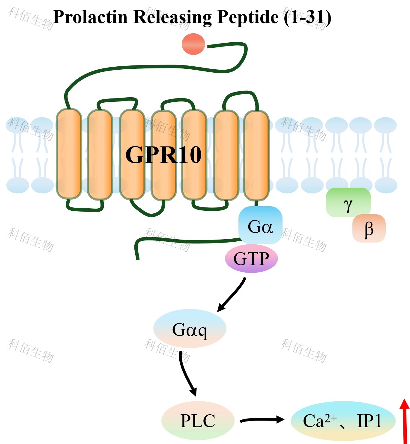 | GPR10(催乳素釋放肽受體,PrRPR),是一種典型的 A 類 GPCR,主要分布于中樞 神經系統(tǒng),特別是下丘腦、丘腦和腦干等調控能量平衡、痛覺和心血管功能的腦區(qū)。 GPR10 的內源性配體是催乳素釋放肽(PrRP),這是一種神經肽,最初因其促進催乳素釋 放的能力而得名,但后續(xù)研究發(fā)現(xiàn)其核心功能在于調節(jié)攝食和能量代謝。PrRP 存在兩種亞 型:PrRP31 和 PrRP20,它們以高親和力結合并激活 GPR10,啟動下游信號級聯(lián)反應。 當配體 PrRP 與 GPR10 結合后,會誘導受體構象變化,進而激活與之偶聯(lián)的 G 蛋白。 GPR10 主要與 Gq/11 家族 G 蛋白偶聯(lián),激活的 Gq 蛋白進一步激活 PLC,催化細胞膜上的 磷脂酰肌醇二磷酸(PIP2)水解生成三磷酸肌醇(IP3)和二酰甘油(DAG)。IP3 與內質 網(wǎng)上的 IP3 受體結合,促使細胞內鈣庫釋放 Ca 2+,導致胞內鈣離子濃度迅速升高;同時, DAG 激活蛋白激酶 C(PKC)。此外,研究也表明 GPR10 在某些細胞背景下能與 Gi/o 蛋 白偶聯(lián),抑制腺苷酸環(huán)化酶活性,降低胞內 cAMP 水平。這些信號通路的激活最終會調控 神經元興奮性、基因表達及神經肽釋放,從而介導 GPR10 在抑制食欲、調節(jié)能量代謝及削 弱阿片鎮(zhèn)痛效應等方面的生理功能。該受體的信號主要通過 G 蛋白偶聯(lián)受體激酶(GRK) 磷酸化和隨后的β-arrestin 結合來實現(xiàn)脫敏和內吞。 |