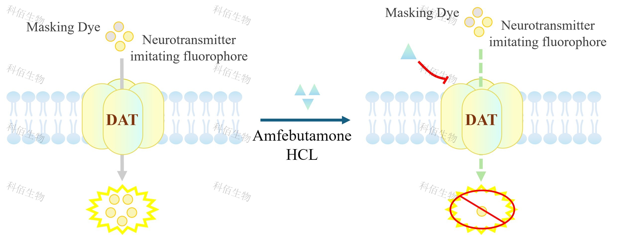 DAT(SLC6A3) CHO 藥靶模型很好的模擬了體內(nèi)轉(zhuǎn)運(yùn)蛋白調(diào)節(jié)神經(jīng)元信號(hào)傳導(dǎo),原理見下圖所示。