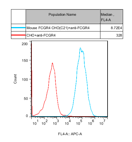 ![]() Figure 1. Recombinant Mouse FCGR4 CHO constitutively expressing FCGR4. |