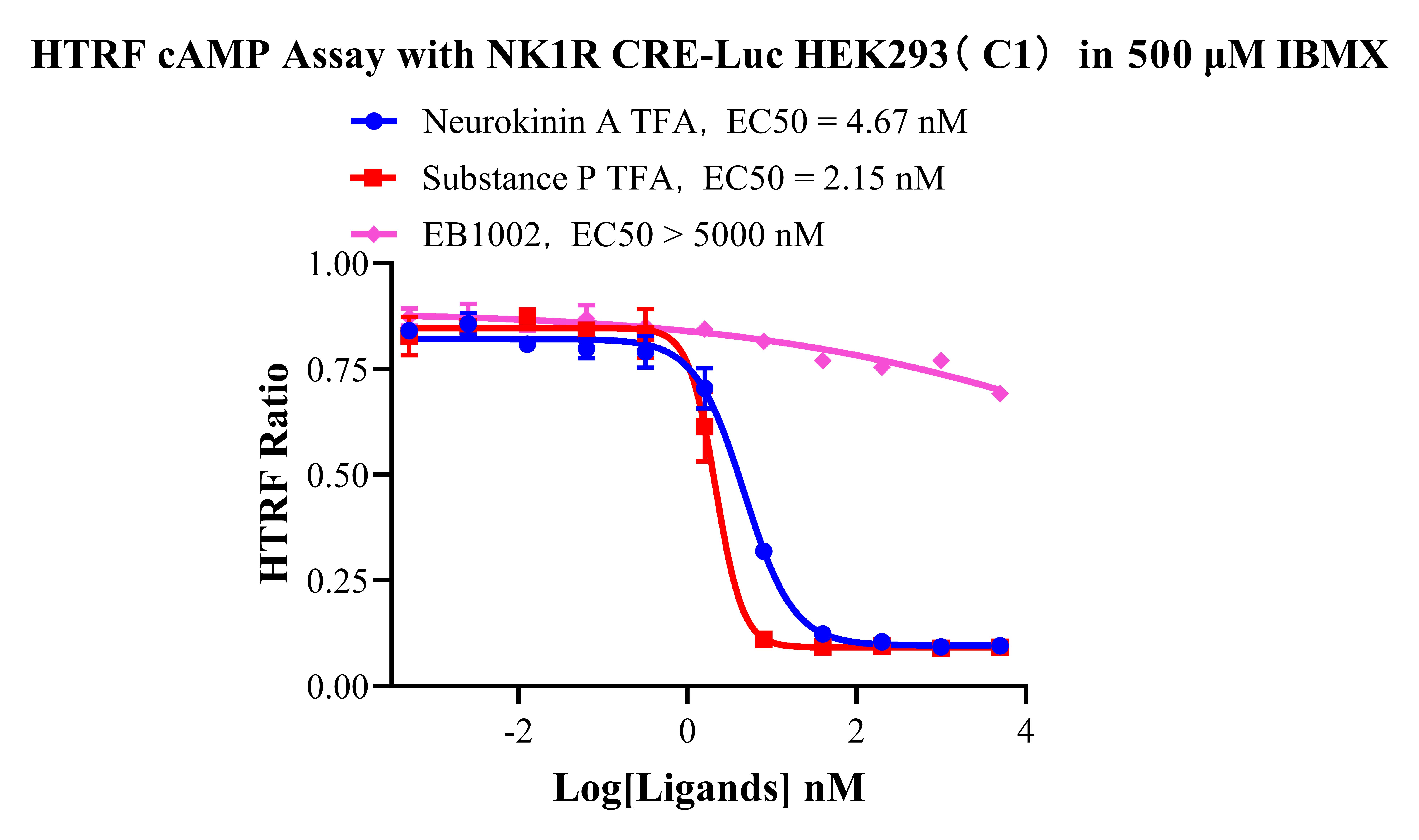 NK1R CRE-Luc HEK293 報(bào)告基因藥靶模型很好的模擬了體內(nèi) NK1R 的信號(hào)轉(zhuǎn)導(dǎo)過(guò)程, 原理見(jiàn)下圖所示。