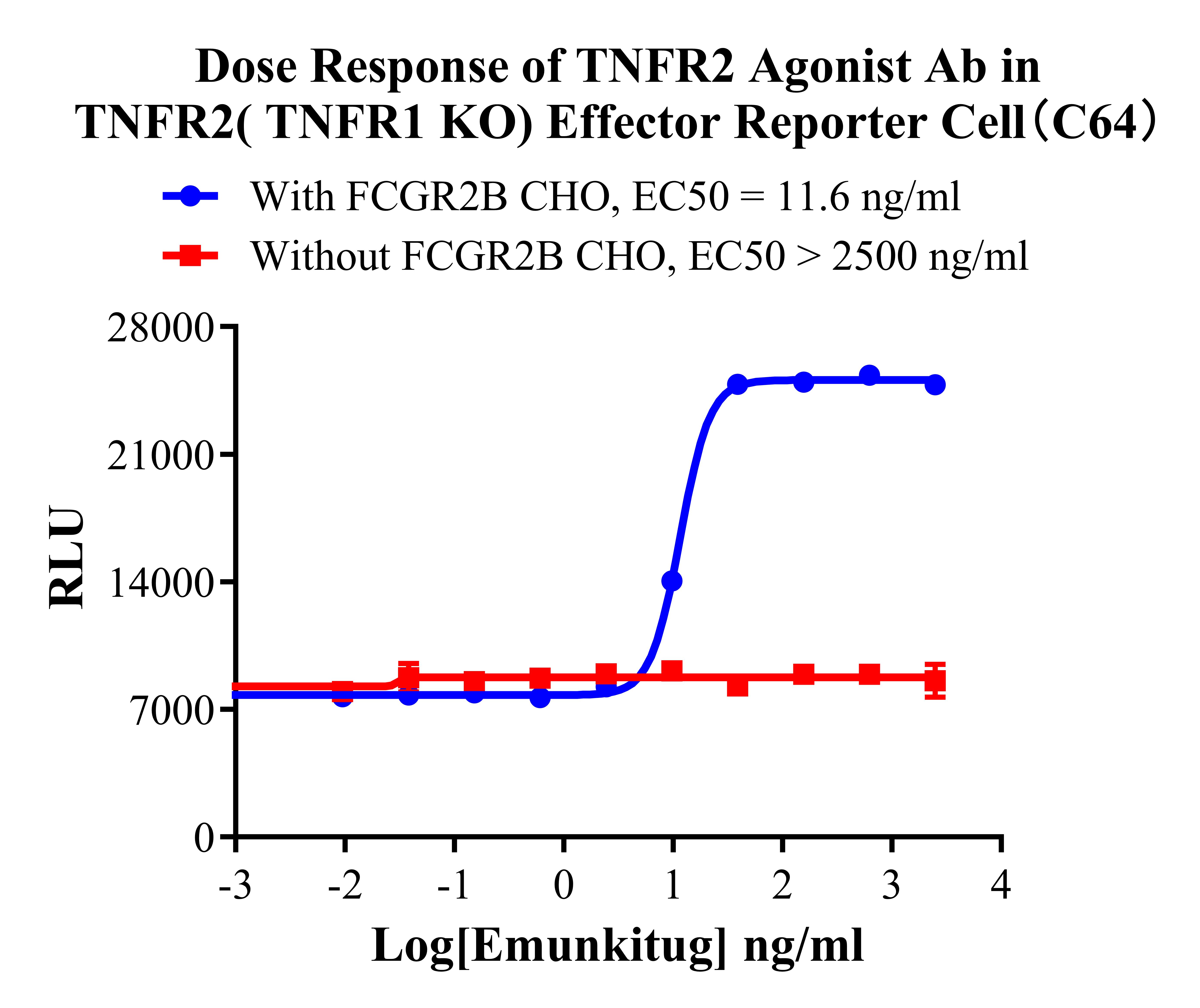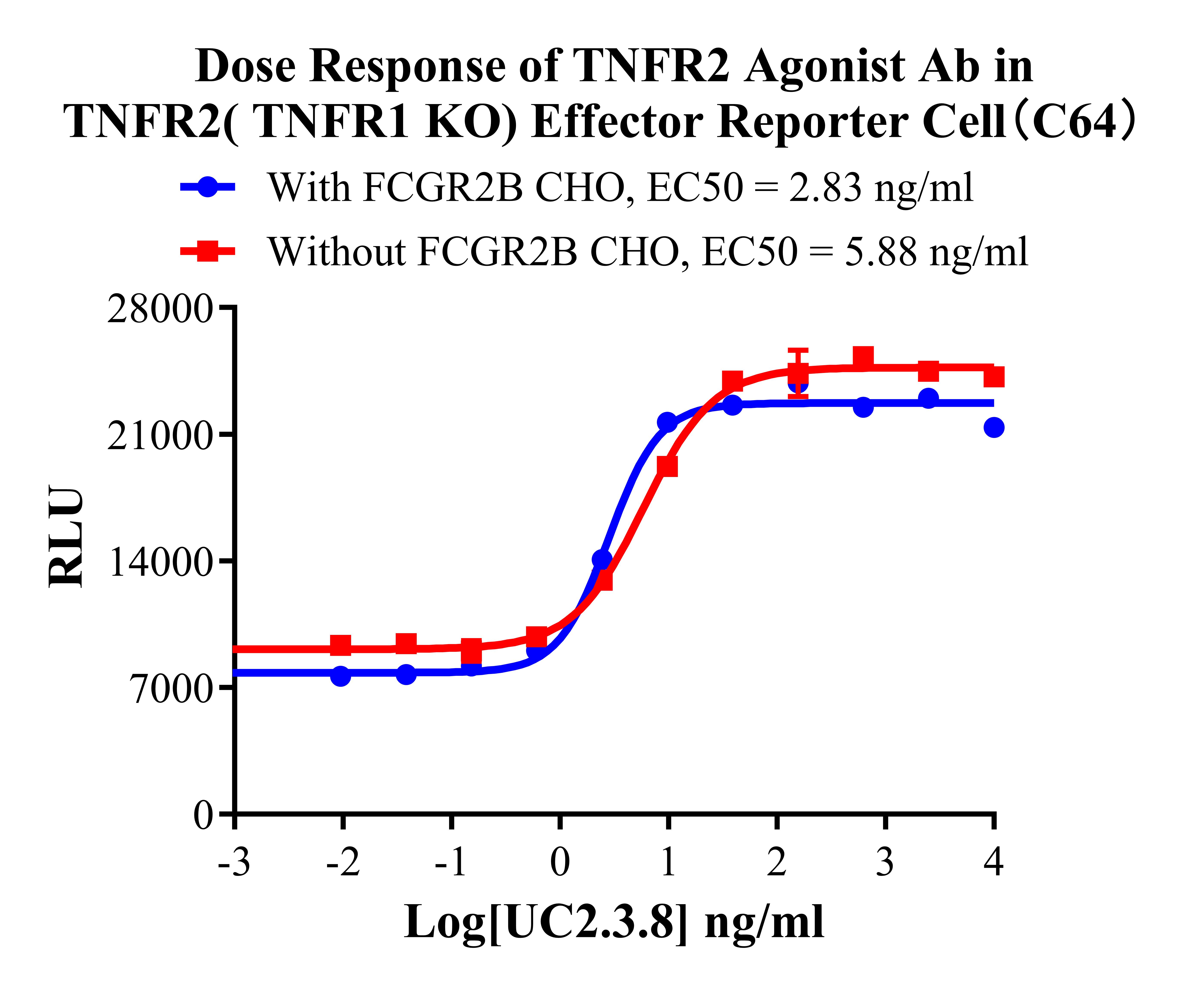 ![]() Figure 1. Sanger of TNFR2( TNFR1 KO) Effector Reporter Cell. ![]() Figure 2. Dose Response of TNFR2 Agonist Ab in TNFR2(TNFR1 KO) Effector Reporter Cell(C64). ![]() Figure 3. Dose Response of TNFR2 Agonist Ab in TNFR2(TNFR1 KO) Effector Reporter Cell(C64). ![]() Figure 4. Blocking of TNFα induced TNFR2( TNFR1 KO) Effector Reporter Cell(C64) Activity by TNFα Neutralization Abs with Membrane Anchored TNFα Cell(Adherent, C12). ![]() Figure 5. Blocking of TNFα induced TNFR2(TNFR1 KO) Effector Reporter Cell( C64) Activity by TNFR2 Blocking Ab with Membrane Anchored TNFα Cell ( Adherent, C12). |
