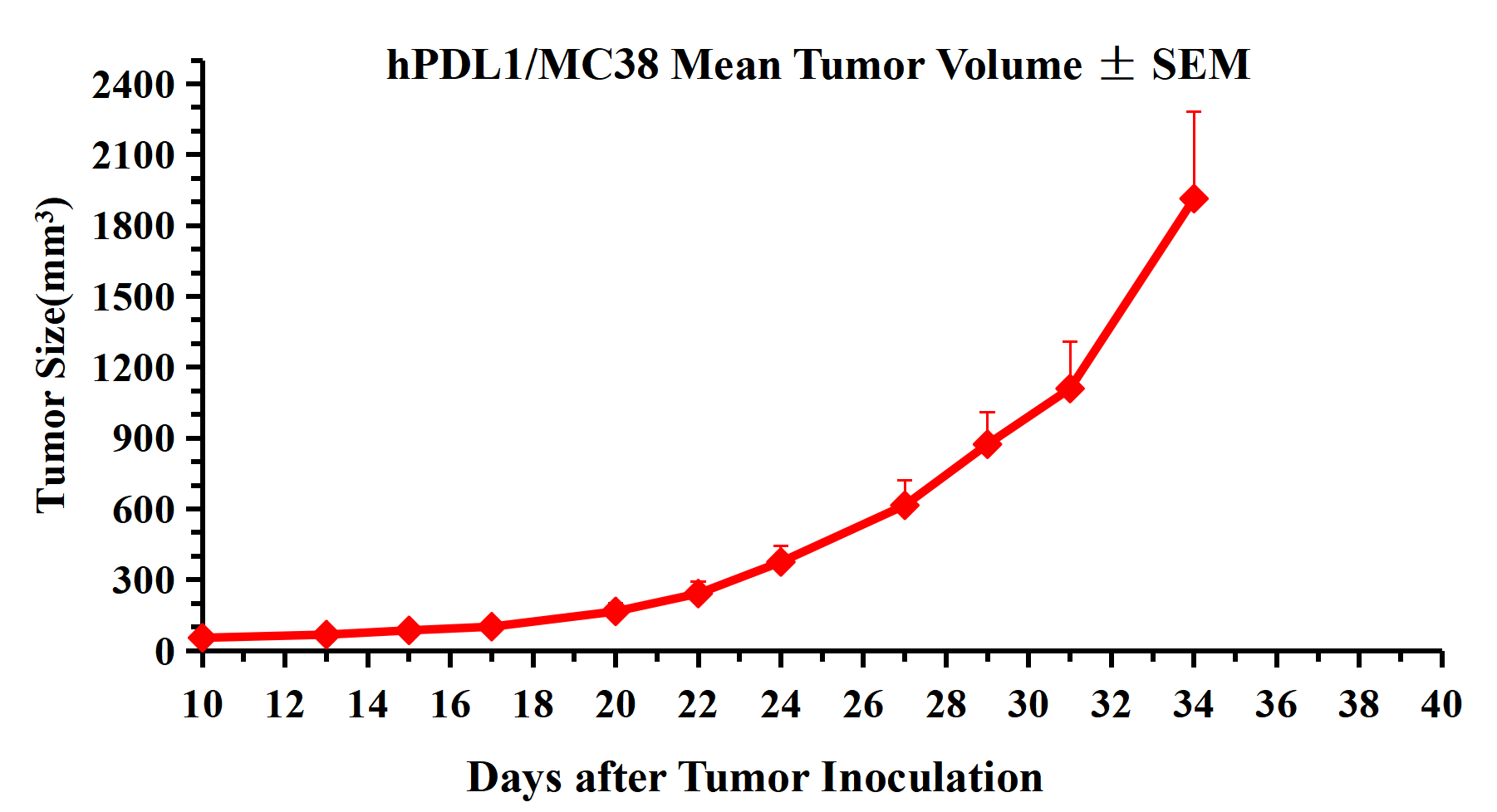 Figure 3. hPDL1/MC38 Mean Tumor Volume ± SEM.