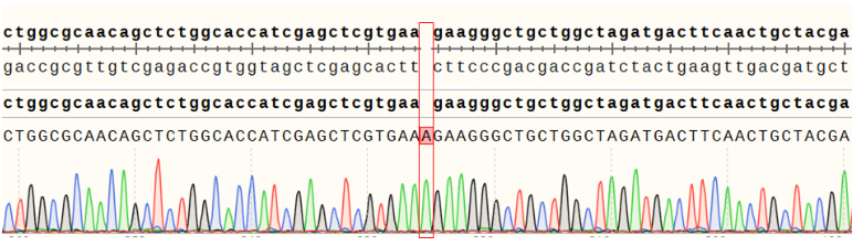 Figure 12.  ACVR2B Effector Reporter Cell 測(cè)序結(jié)果 ACVR2A(NM_001616.5): c.409_410insT/ ACVR2A:p.Y137Lfs*76