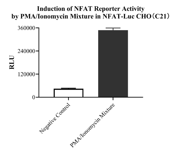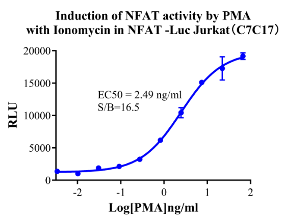 Figure 3.Detect Luciferase assay by Ultra Luciferase Detection Kit CBPH0001(we strongly suggest to purchase from Cobioer). Induction of NFAT activity by PMA with Ionomycin in NFAT-Luc Jurkat(C7C17).