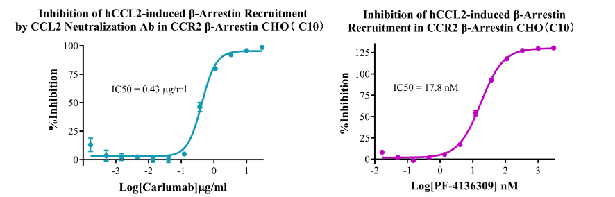 為助力CCR2靶點(diǎn)藥物研發(fā),南京科佰開(kāi)發(fā)了CCR2/β-Arrestin/CHO、CCR2/CHO、CCR2/Gα15/CHO、CCR2/Gα16/HEK293細(xì)胞篩選模型,產(chǎn)品驗(yàn)證結(jié)果如下: